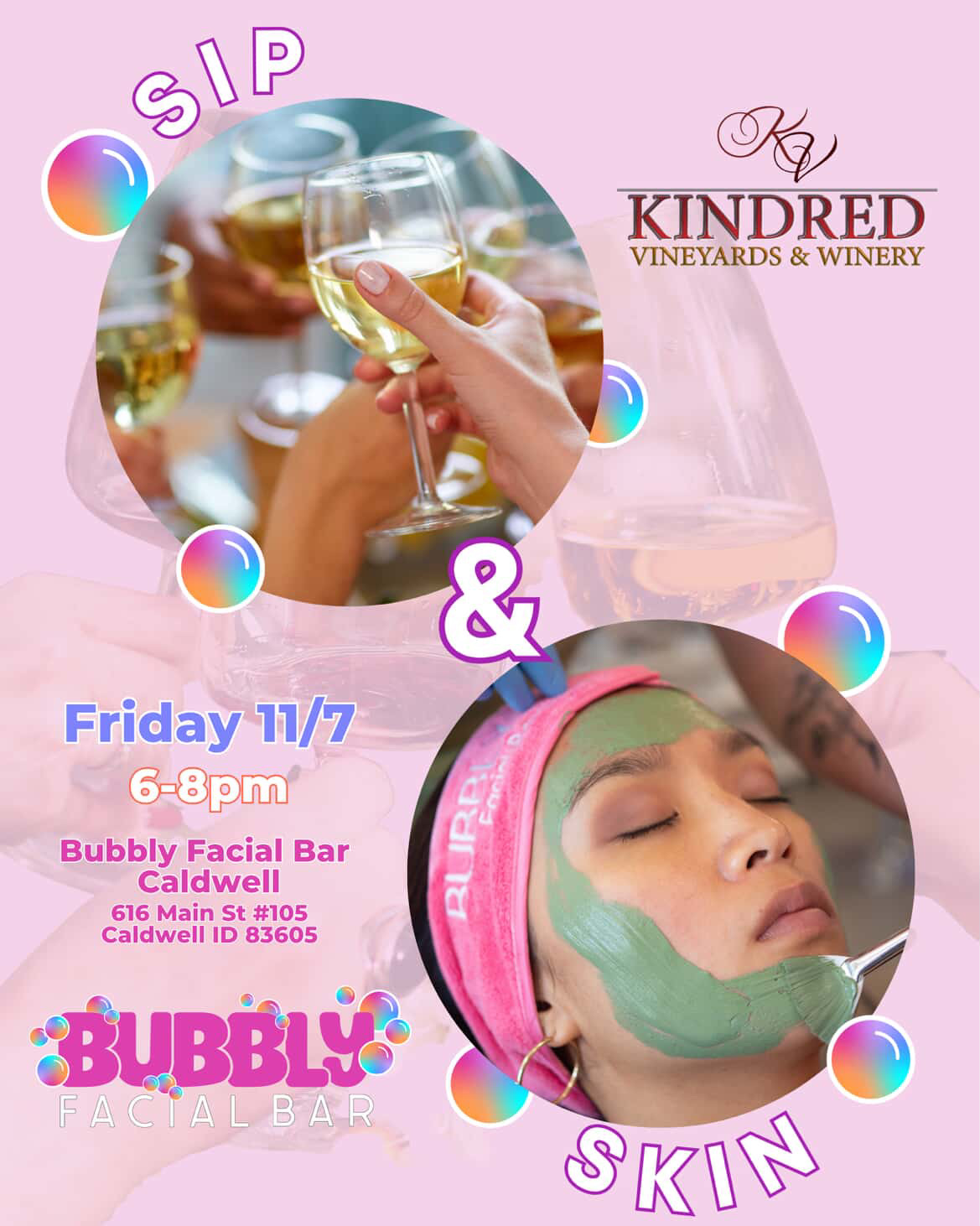 Sip & Skin is the perfect evening to unwind, indulge, and glow. Join us at Bubbly Facial Bar around the corner from Kindred by the Creek for a relaxing night