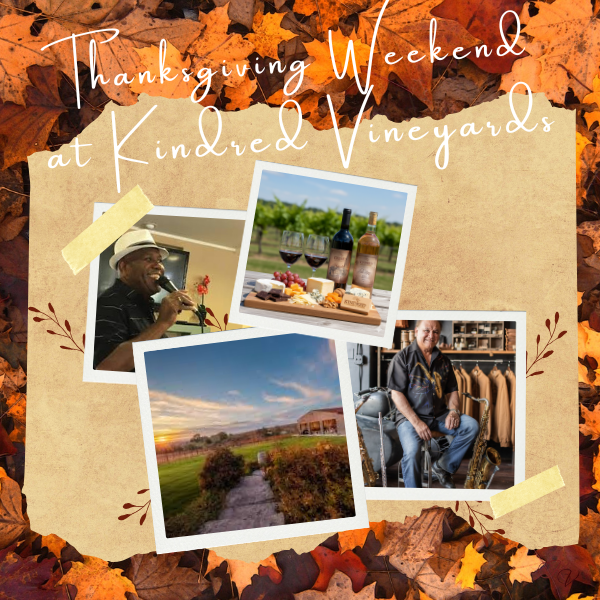 🍂 Thanksgiving Weekend at Kindred Vineyards 🍷 Celebrate the season of gratitude at Kindred Vineyards! Join us for a relaxing Thanksgiving Weekend filled with great wine, live music, and good