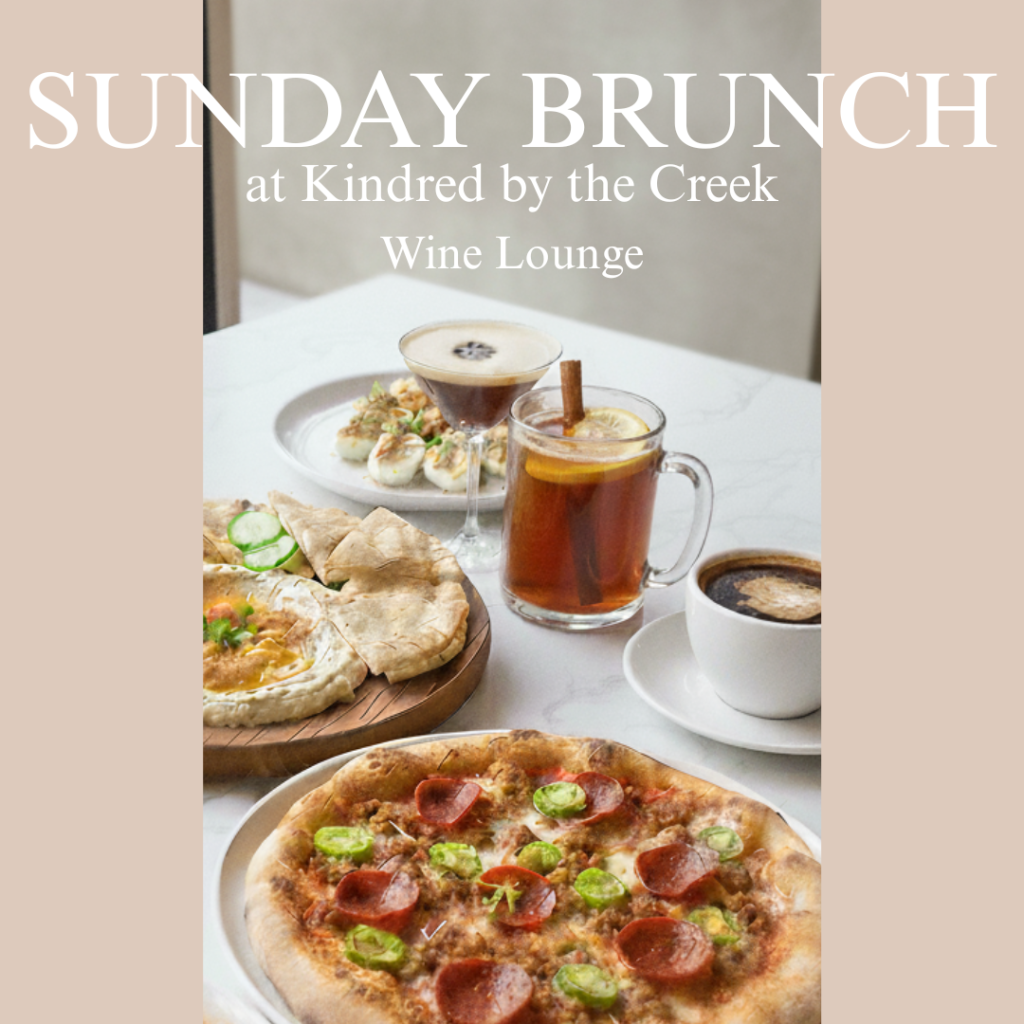 Set along the creek, our cozy wine lounge offers the perfect setting to sip, savor, and slow down with friends and family. Whether you’re craving brunch pizza, deviled eggs with a twist, or a mimosa flight, brunch at Kindred by the Creek is the ultimate way to unwind and start your Sunday right.