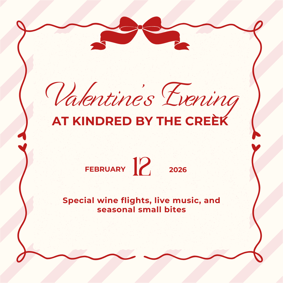Kindred by the CreekJoin us for a Galentine's evening filled with wine, laughs, and spending a few hours with your favorite people. Come try our seasonal flight, catch up, and stay awhile — no plans needed beyond great company and an excuse to dress up. Dress cute, order another glass, and enjoy a laid-back night out with your